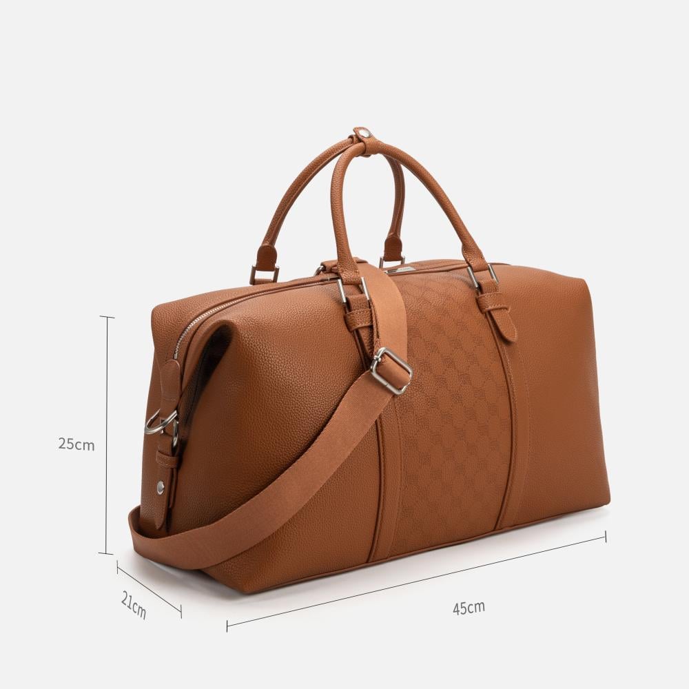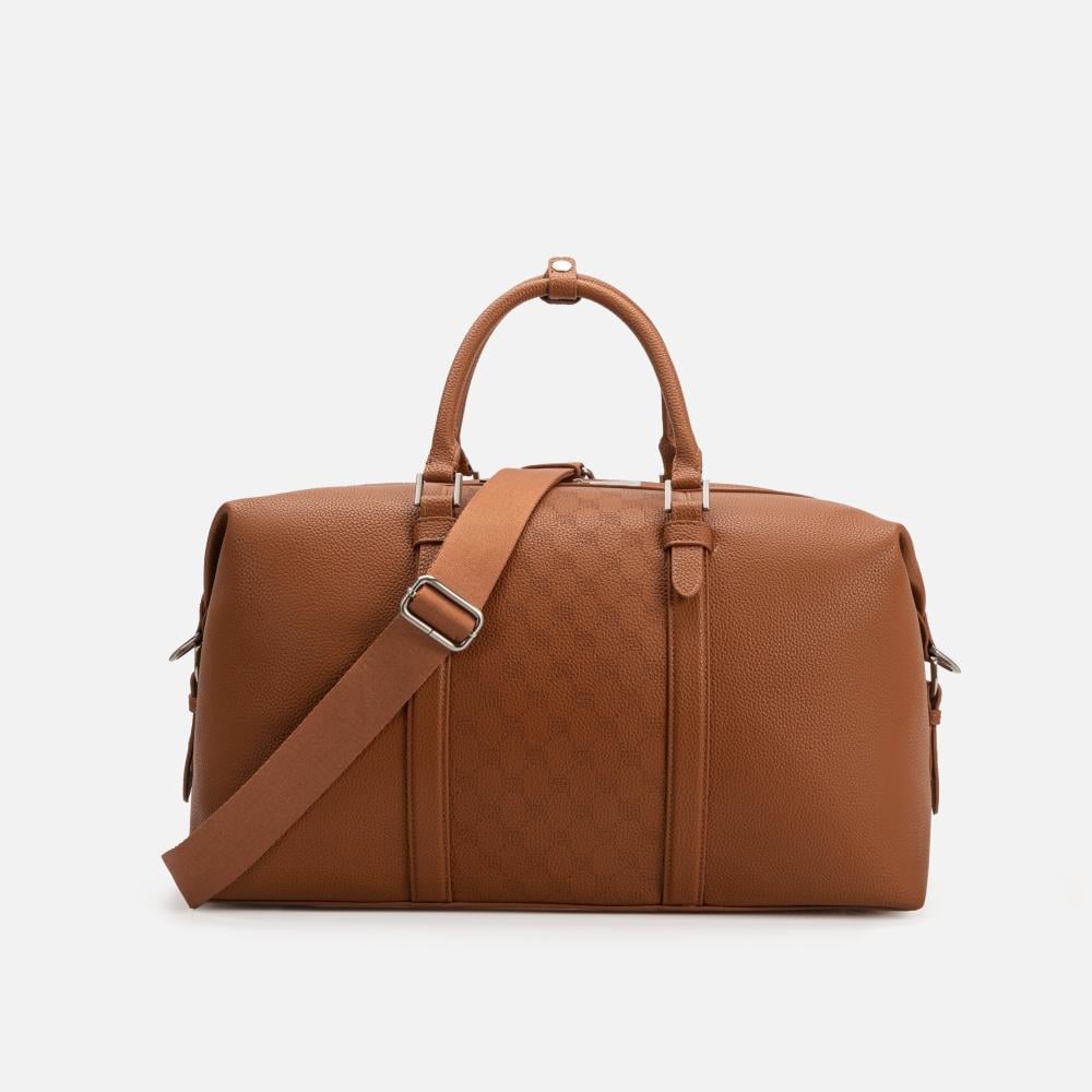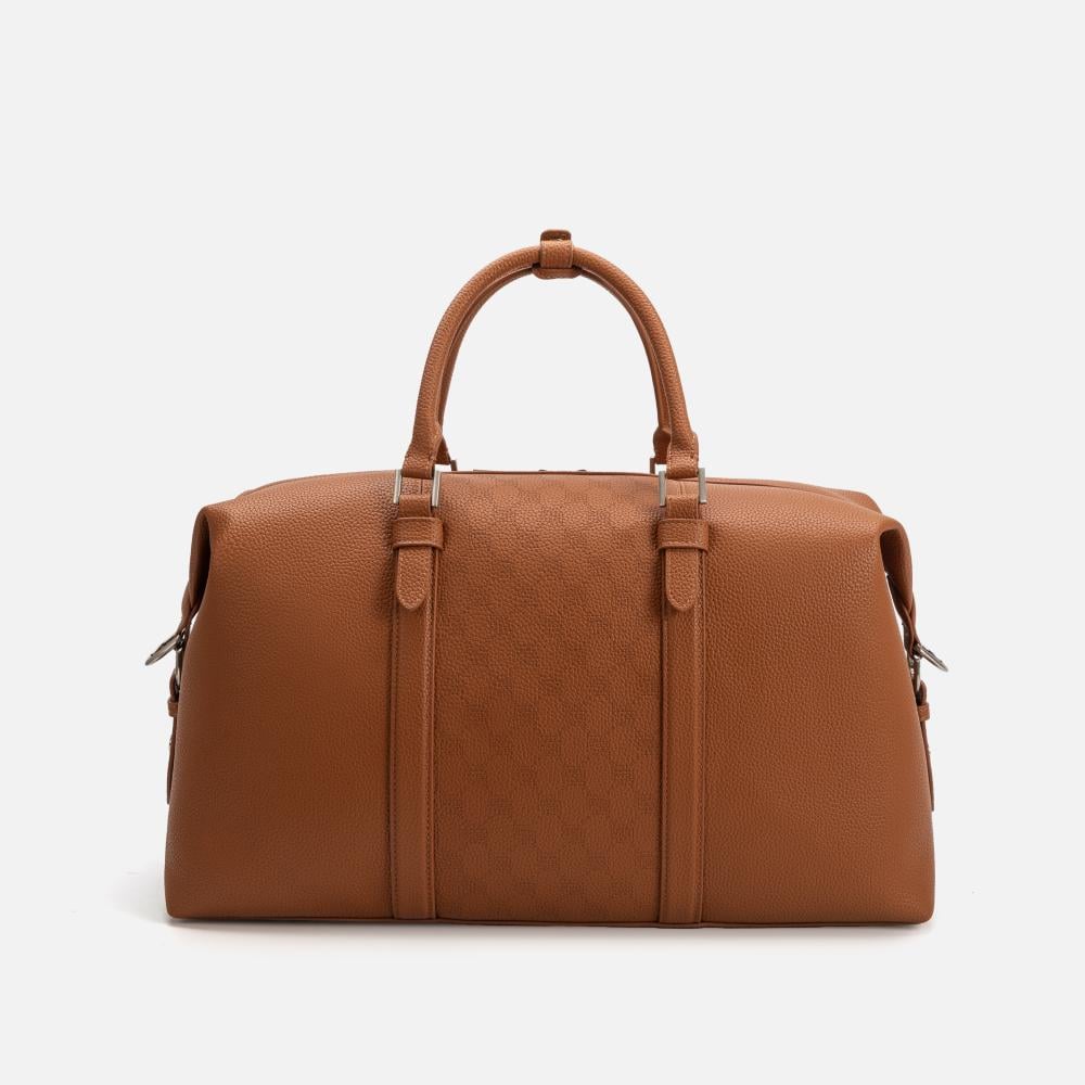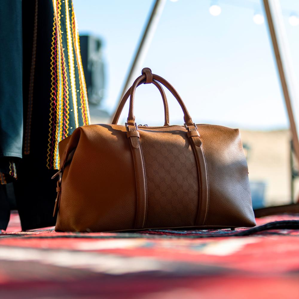- شنطة سفر من الجلد بنقوش مميزة غير بارزة وبمقبض يد ثابت تعطي سهولة لحمل الشنطة