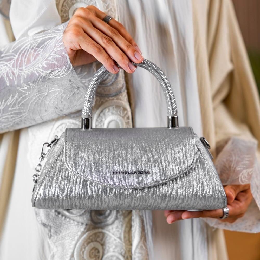 أضيفي لمسة من السحر والتألق على إطلالتك مع شنطة سهرة فاخرة متوفرة بلون فضي أنيق وألوان أخرى تخطف الأنظار.