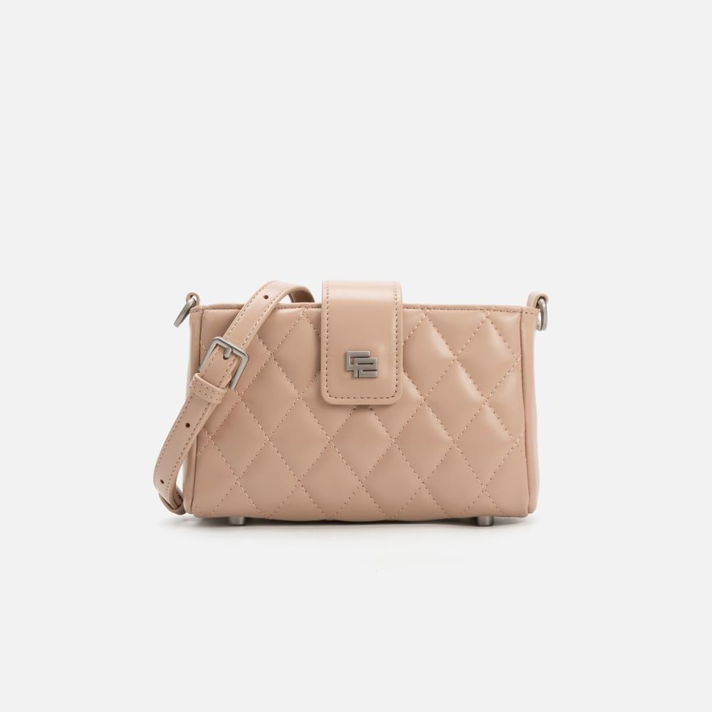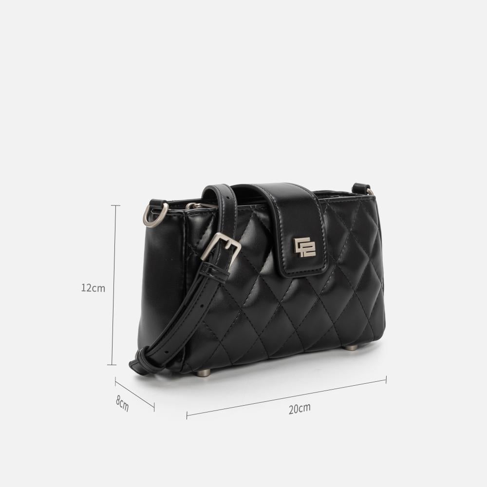 ارتقي بإطلالتك مع هذه الشنطة العصرية التي تجمع بين التصميم الكلاسيكي واللمسات الحديثة. مصنوعة من جلد صناعي عالي الجودة بتأثير مبطن يخطف الأنظار، وتتميز بقفل معدني فضي يحمل شعار العلامة التجارية لمزيد من التميز. تصميمها الصغير والمنظم يجعلها مثالية لحمل أغراضك الأساسية مثل الهاتف، المحفظة، والمفاتيح. يأتي معها حزام كتف قابل للتعديل لتتمكني من ارتدائها كشنطة كروس بودي أو على الكتف.