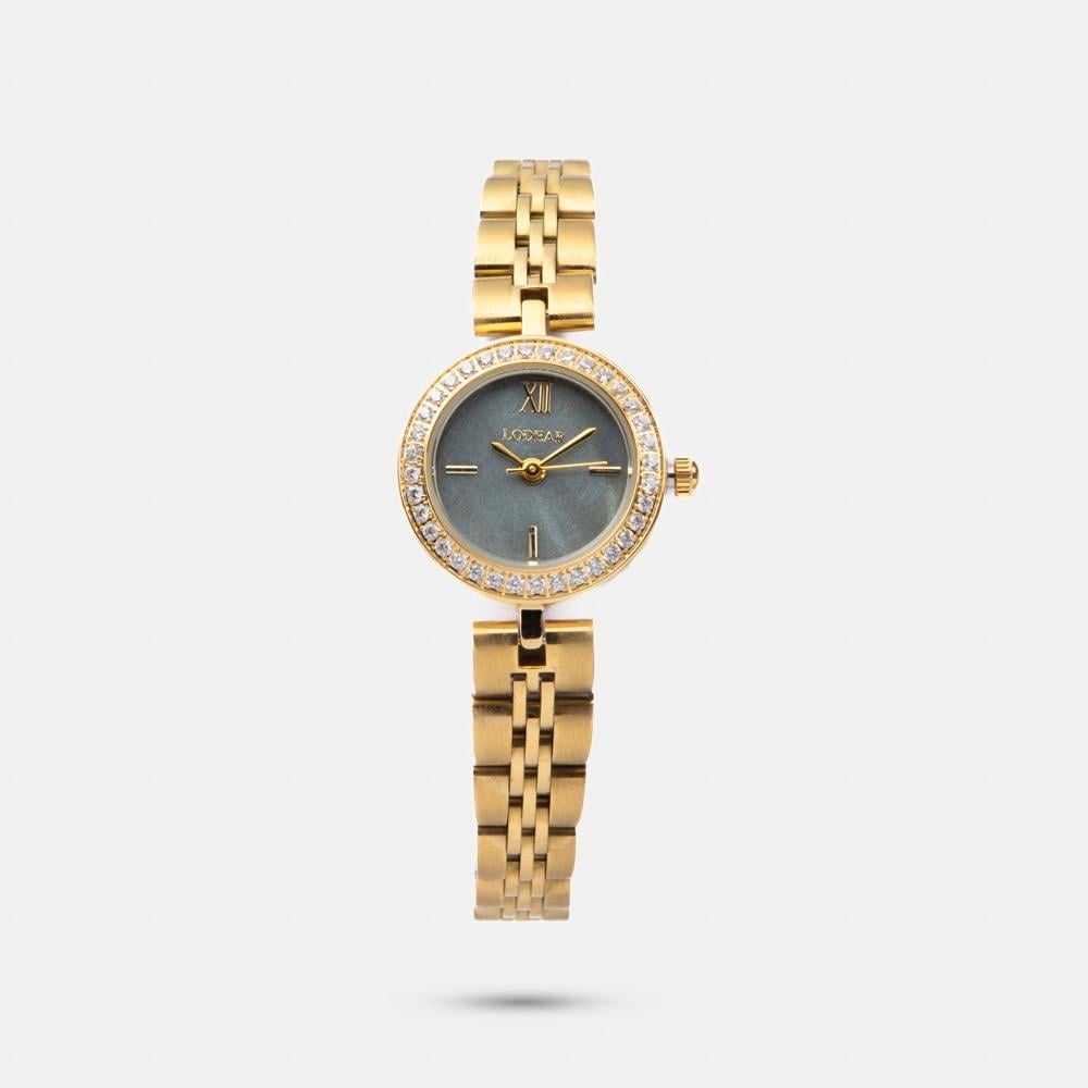 - ساعة نسائية بسير ذهبي مقاوم للصدأ والتآكل والماء