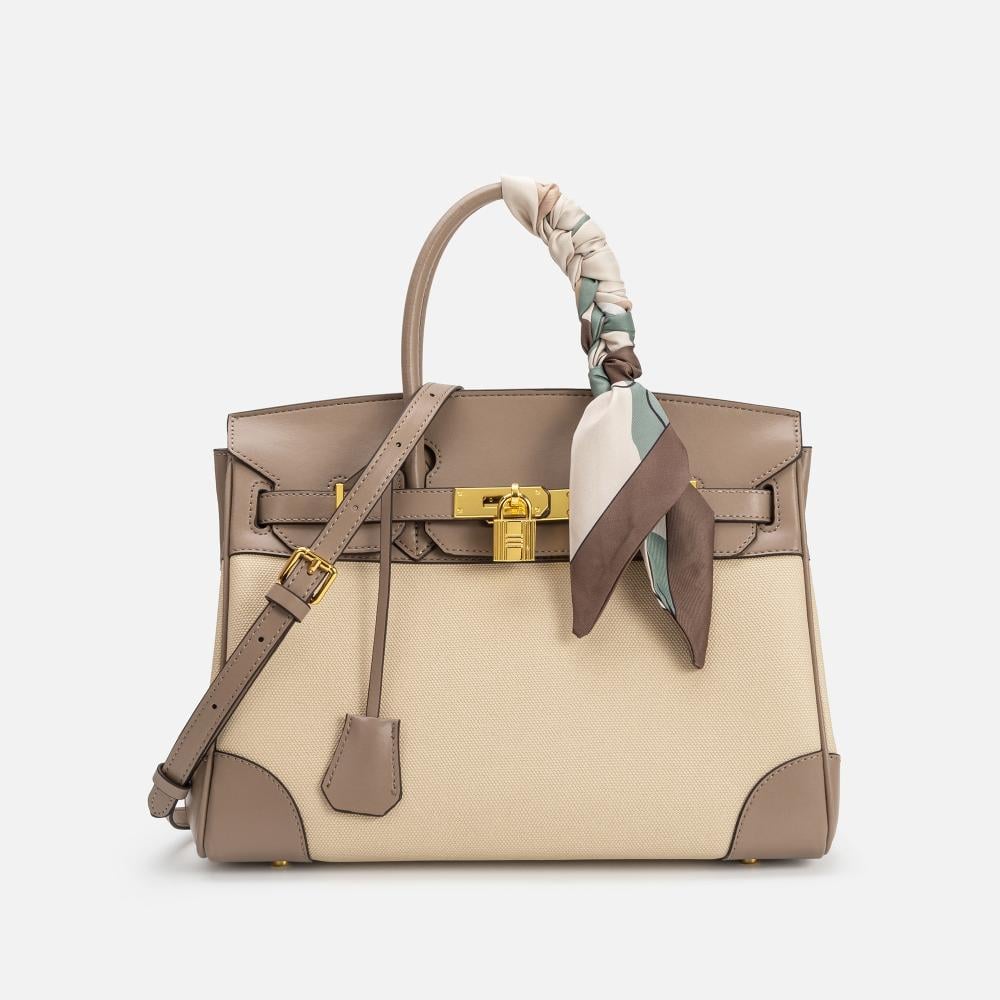 - تأتي الحقيبة باللون الكاكي في الاطراف والبيج من المنتصف