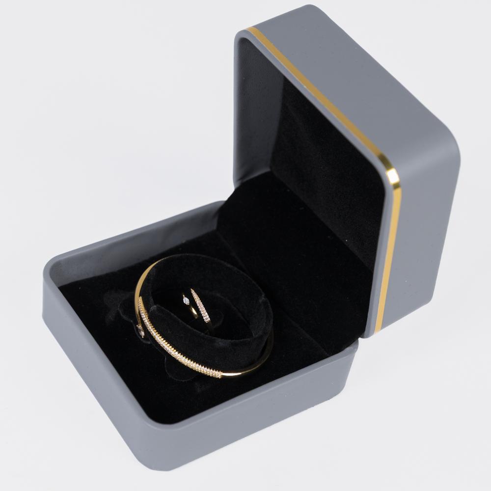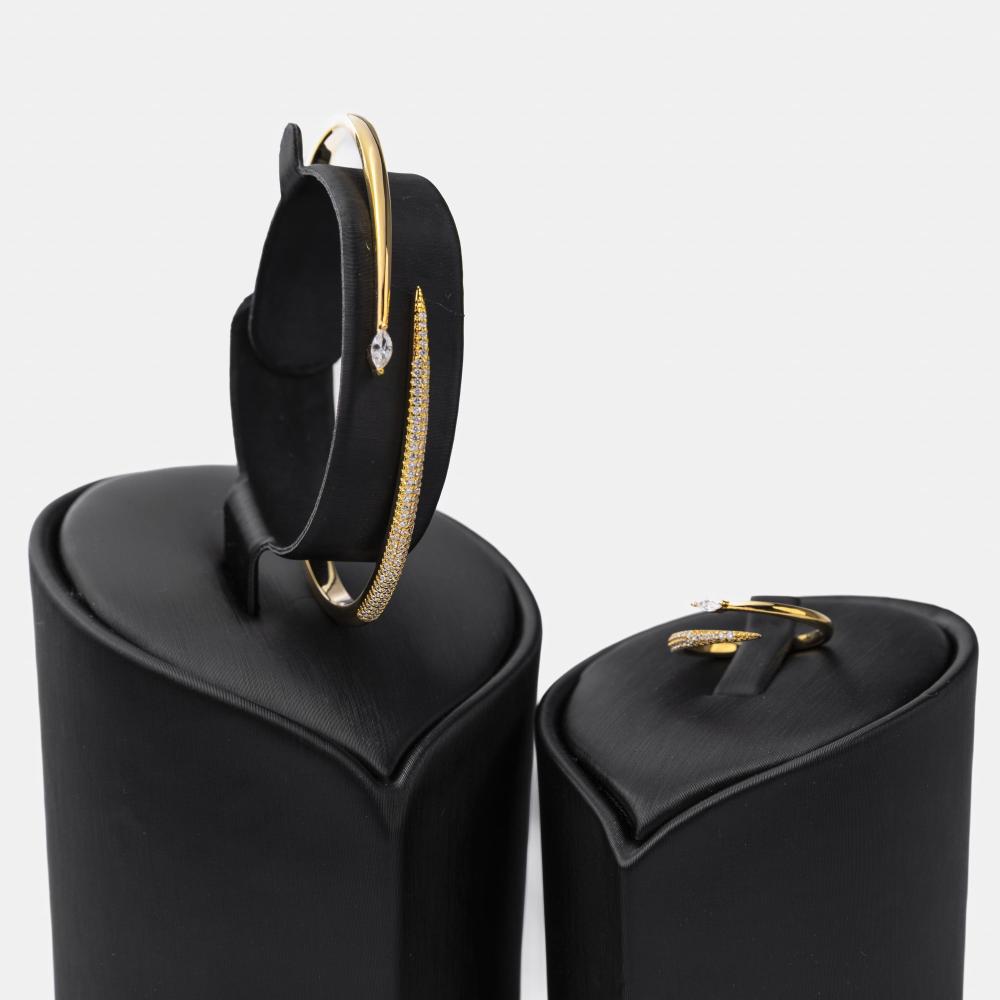 - اسوارة من الزركون باللون الذهبي تلتف على اليد وتنتهي اعلى الساعد بشكل بسيط وانيق