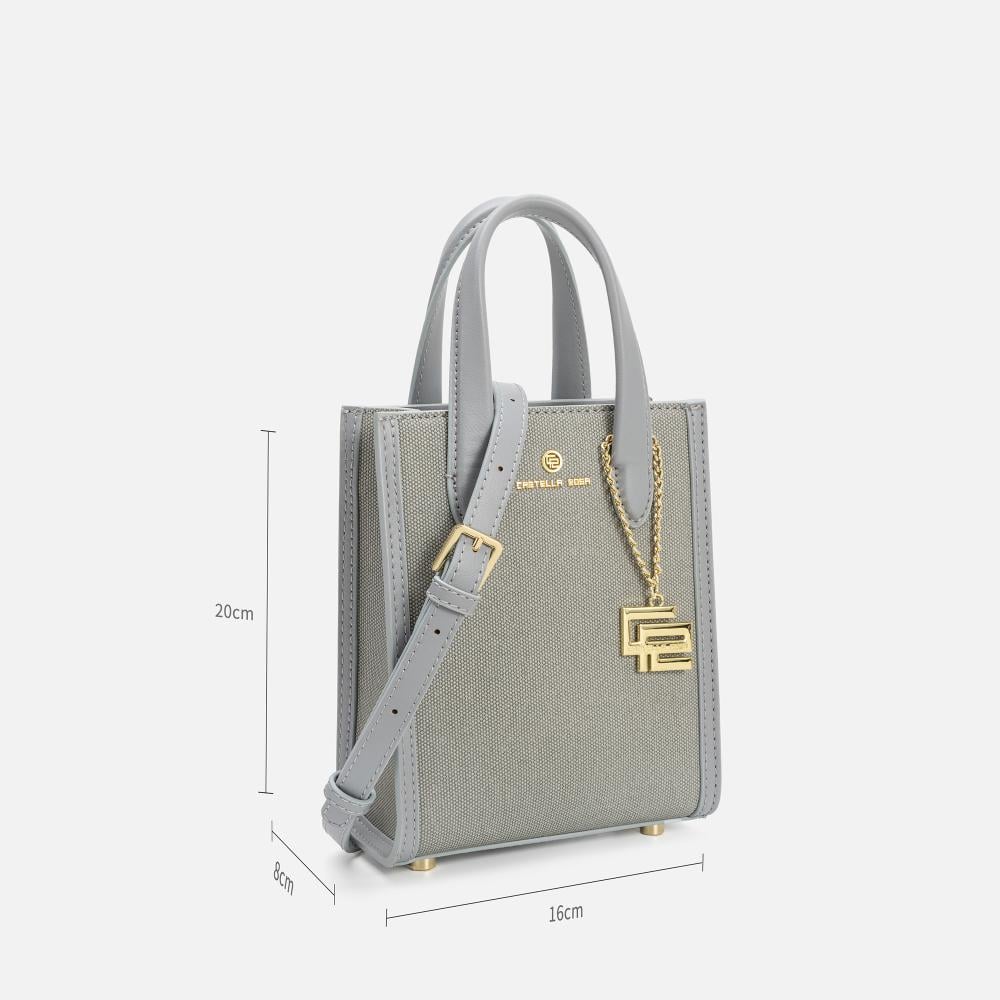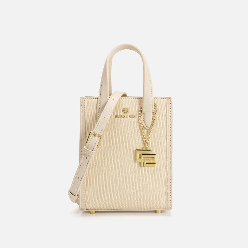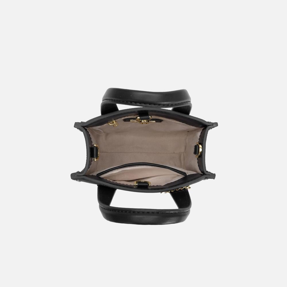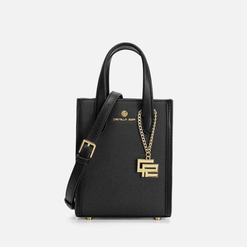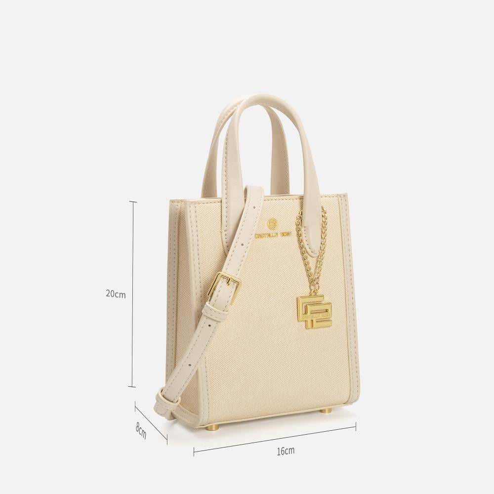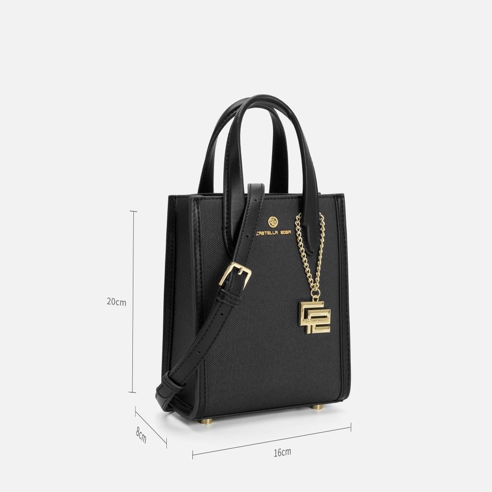 · شنطة مصممة بشكل مستطيل بمقبض يد ثابت يعطي سهولة لحملها مع ميدالية منسدلة للأمام لزيادة جاذبيتها