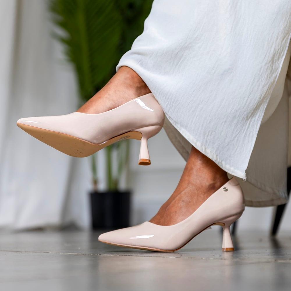 - حذاء كعب عالي من الجلد اللامع مغلق من الامام