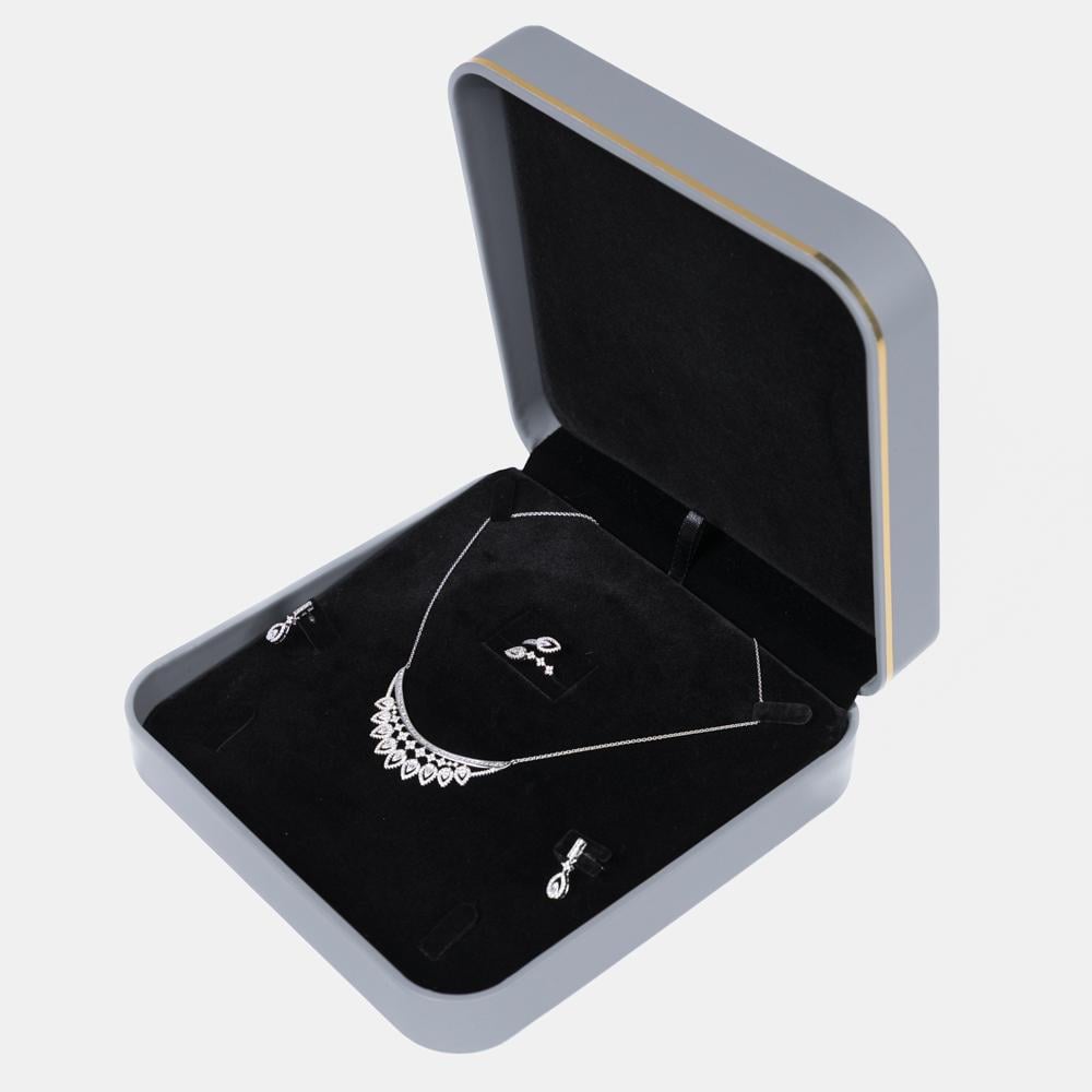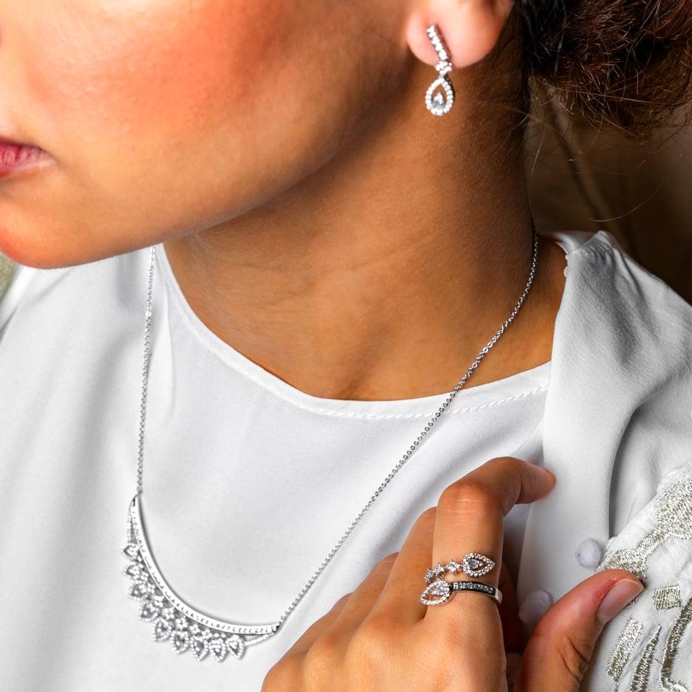 طقم زركون باللون الفضي، بتصميم فخم يناسب المناسبات البسيطة، تقدمه لك كارتيلا روزا بجودة عالية